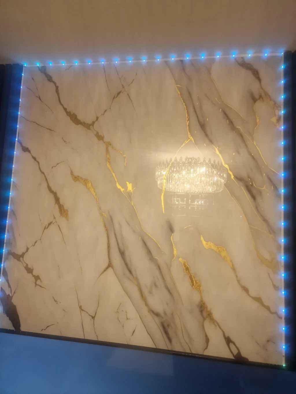 Material: High-quality PVC with a high-gloss finish, offering durability, flexibility, and an elegant golden marble effect