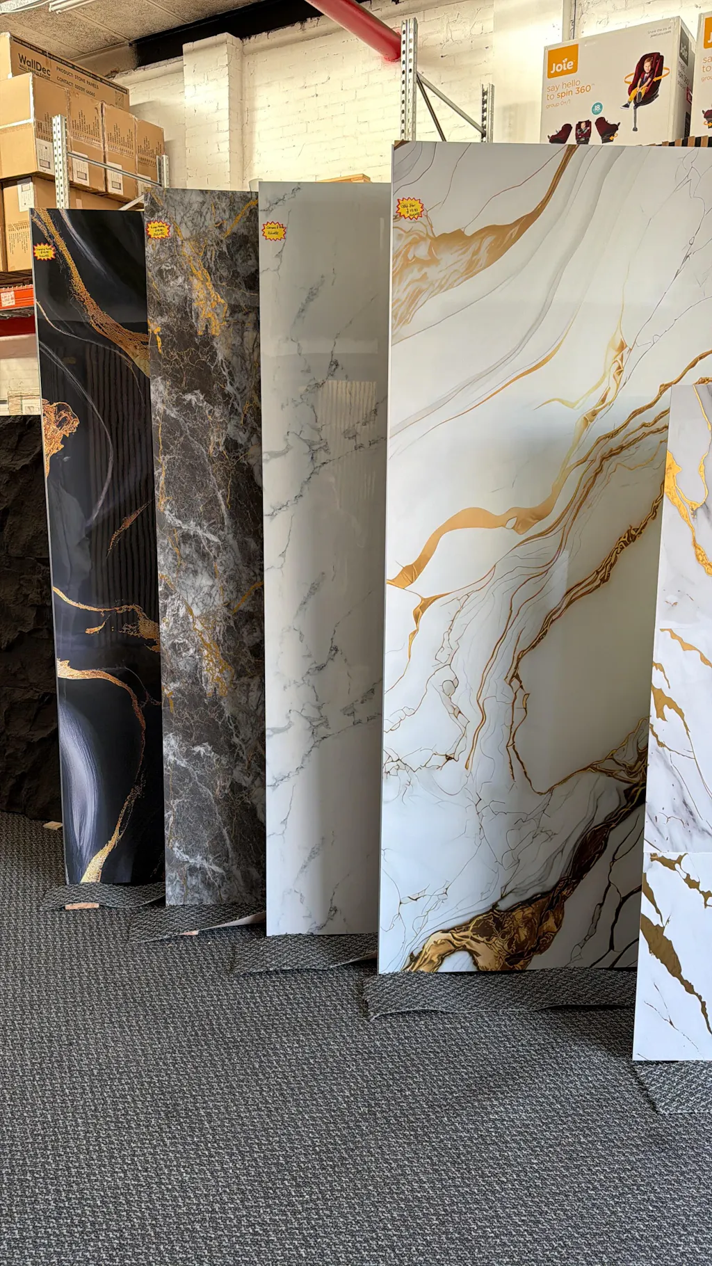 Surface Finish: Glossy surface with realistic marble and granite-style patterns enhanced with gold tones